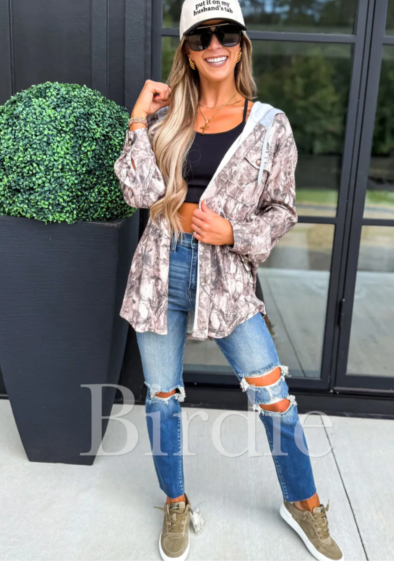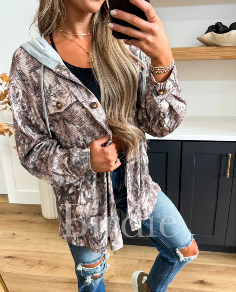 BIRDIE PREORDER Ribbed Shacket with Gray Hood in Dark Camo